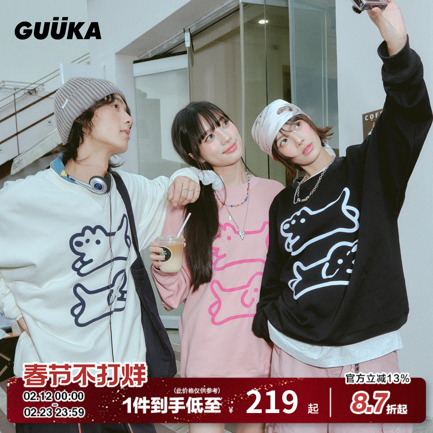📚 【直播专属】GUUKA&matsui联名小狗重磅圆领卫衣男款纯棉加绒上衣