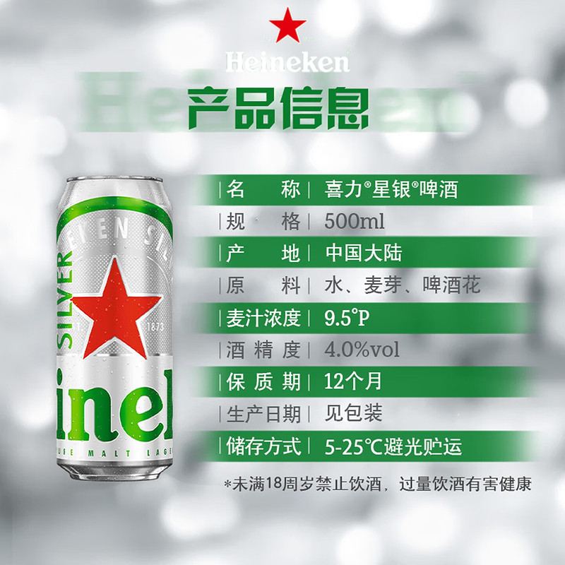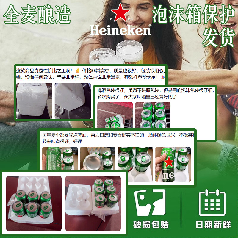 📚 Heineken/喜力啤酒经典500ml罐装*6听全麦拉罐节日送礼黄啤中浓度