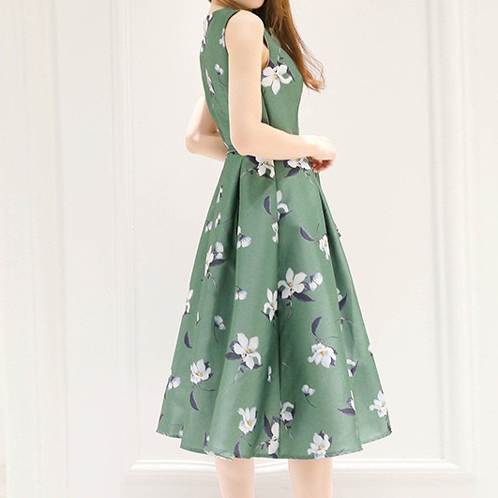 📚 Mid-length sleeveless dress with waist and thin A-line skirt