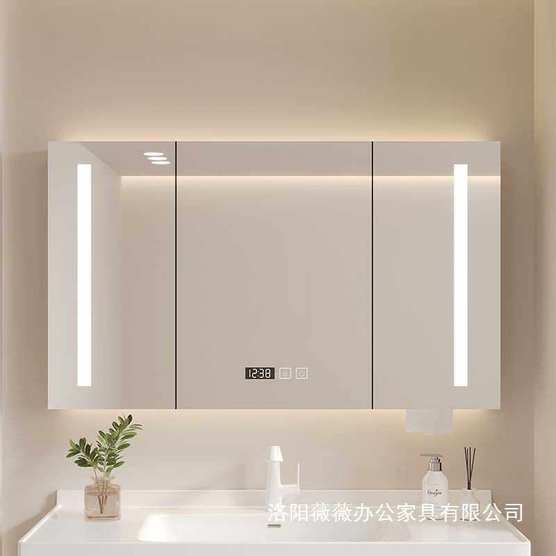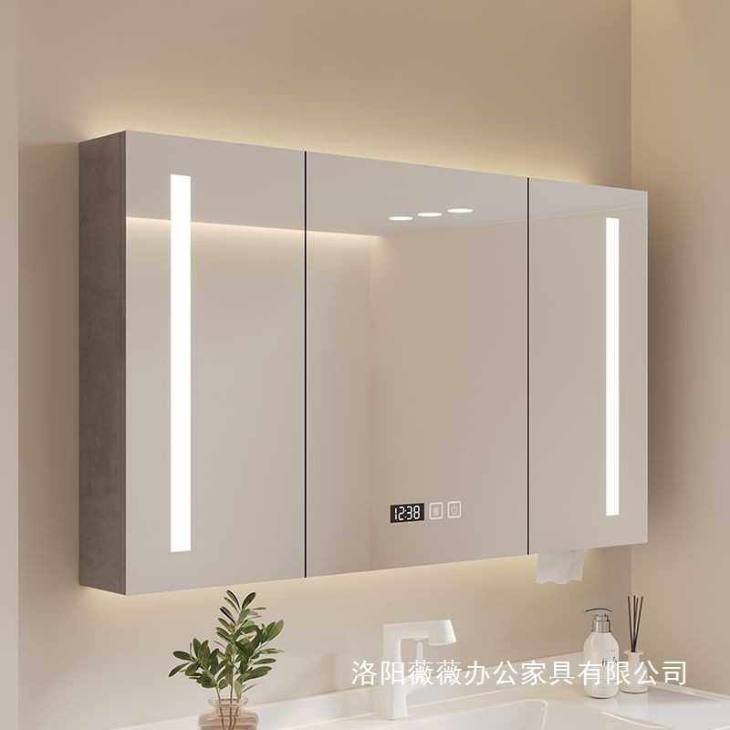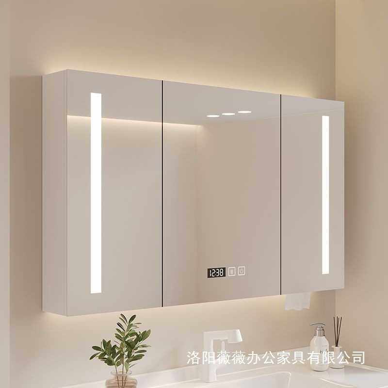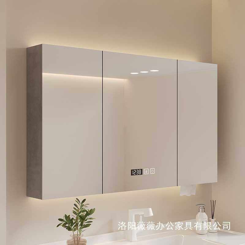 📚 卫生间挂墙式置物架浴室储物柜智能单独镜柜实木化妆镜收纳置放架