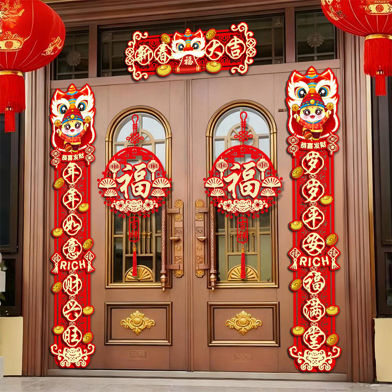 📚 春联2026年新款自带背胶植绒布入户门对联马年高端全磁吸新年门贴