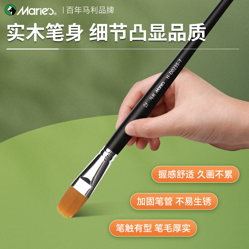 📚 马利尼龙水粉画笔仿狼毫色鸭舌型画笔油画笔丙烯水粉水彩色彩笔美术生专用长杆排笔G1630画材刷套装