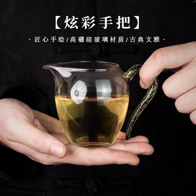 📚 圣山公道杯高透玻璃手工高硼硅耐高温大号鎏金茶具分茶器公道杯