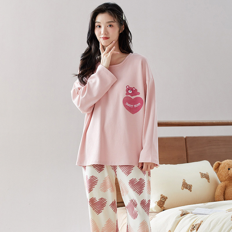 📚 可人儿春秋季纯棉睡衣女休闲圆领秋款长袖套头少女学生家居服套装