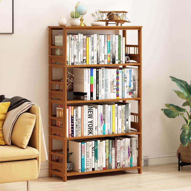 📚 简易书架置物架落地家用学生放书架子儿童书柜实木多层竹子收纳架