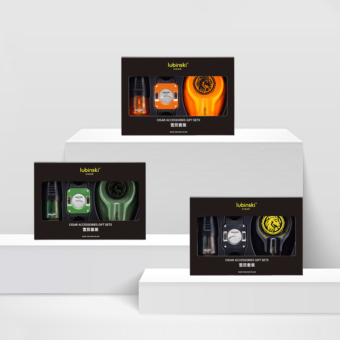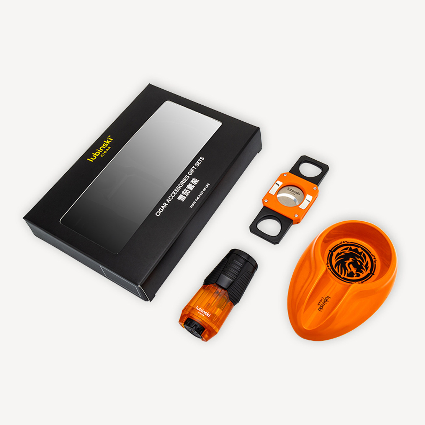 📚 LUBINSKI鲁宾斯基雪茄配件三件套礼盒套装打火机雪茄剪烟灰缸