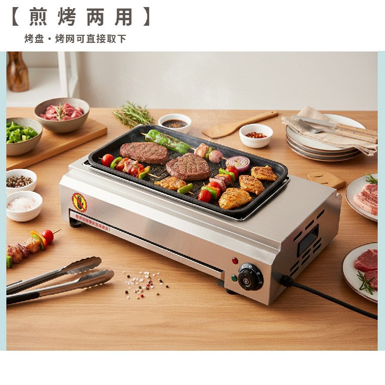 📚 电烧烤炉家用商用插电炉子无烟电烤盘室内生蚝面筋不锈钢烤串加厚