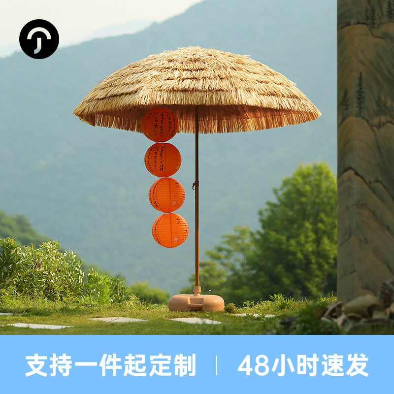 📚 户外遮阳伞仿真稻草伞茅草伞太阳伞折叠沙滩伞庭院防晒伞别墅景区