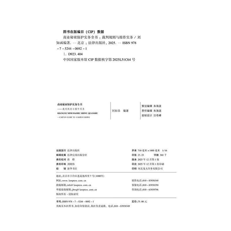 📚 正版2025新书 商业秘密保护实务全书 裁判规则与操作实务 刘知函 法律出版社9787524406921