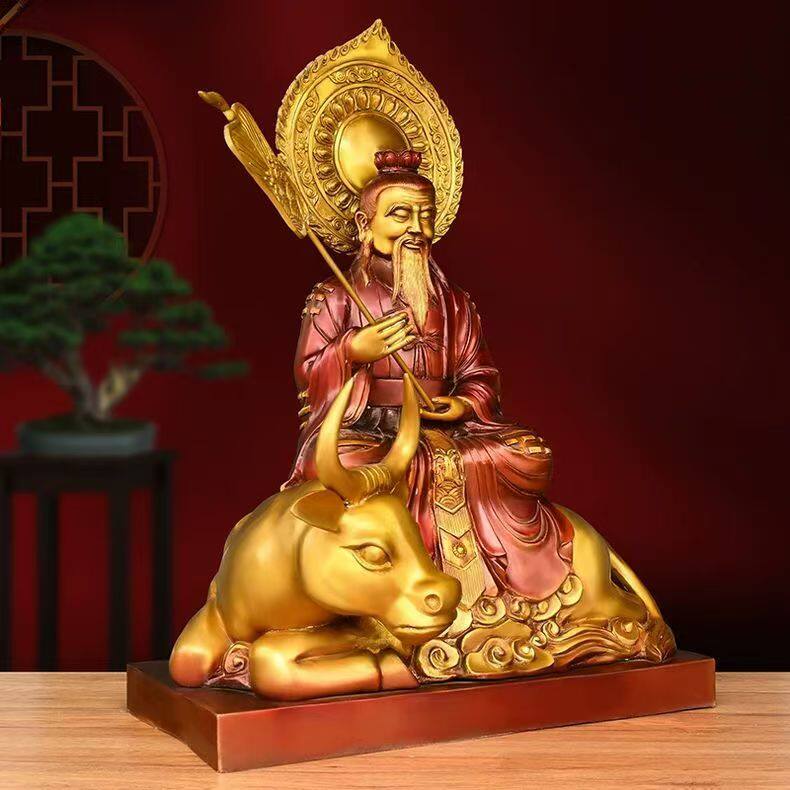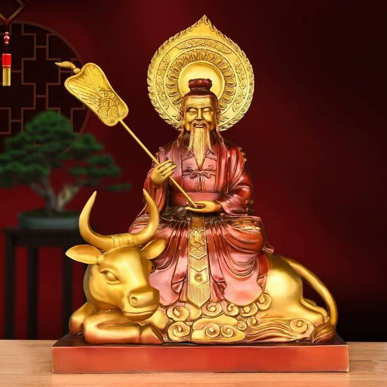 📚 纯铜太上老君摆件骑牛老君神像三清道祖道德天尊铜像黄铜老君佛像