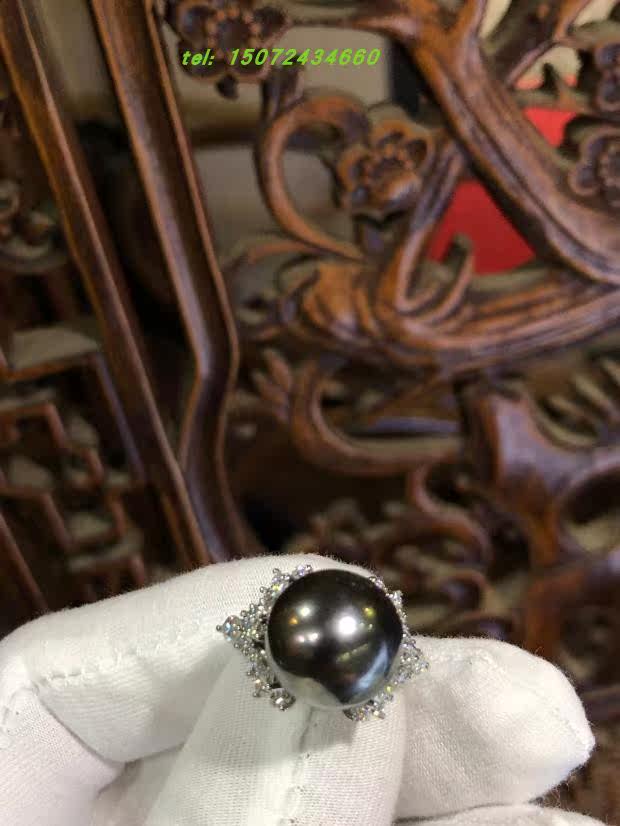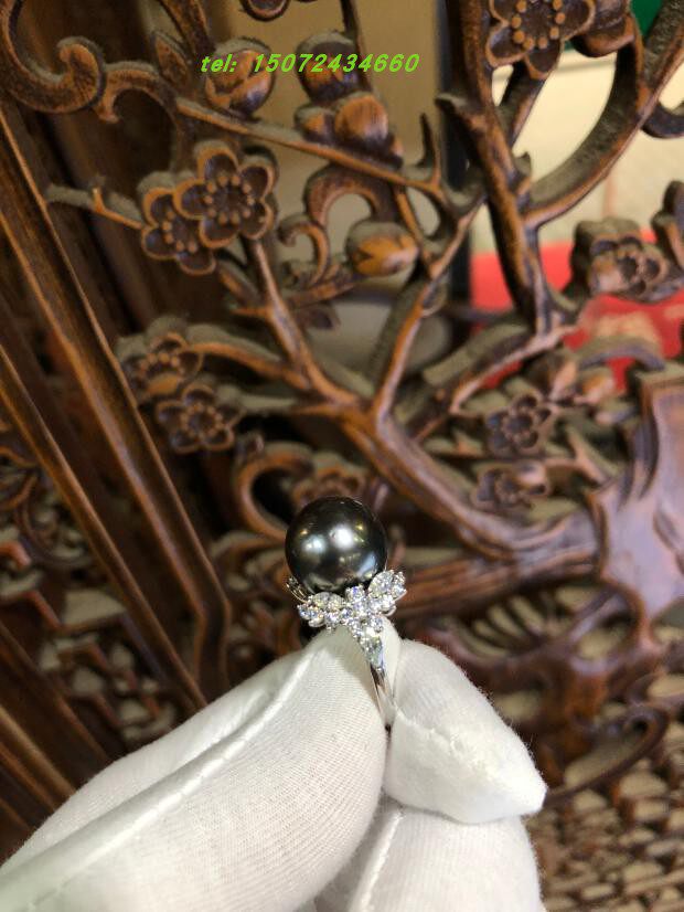 📚 18k白金伴钻镶嵌大溪地黑珍珠女款戒指 武汉名吉专业珠宝制作服务