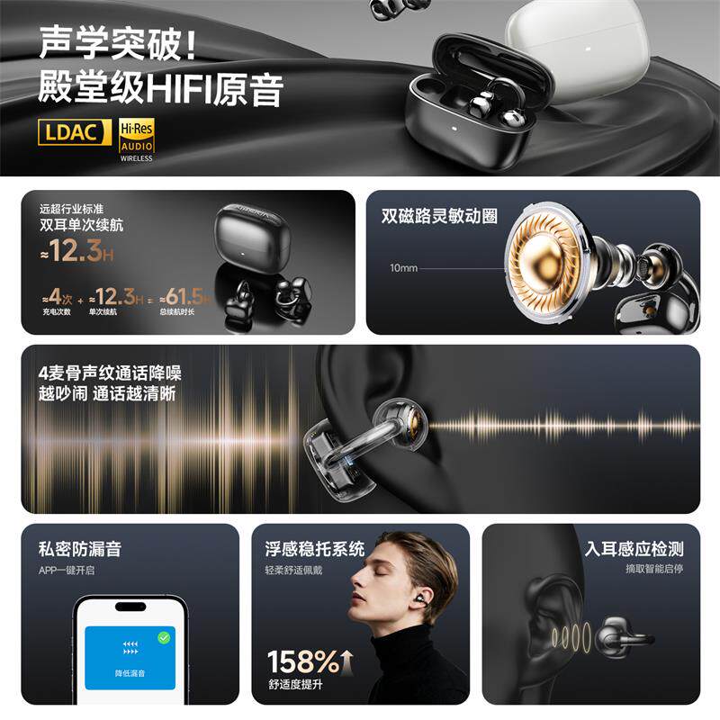 📚 西伯利亚羽MC20耳夹式蓝牙耳机无线不入耳运动4麦骨声纹通话降噪