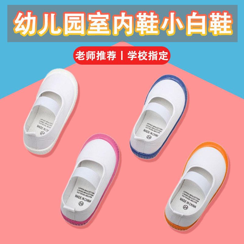 📚 幼儿园室内鞋女童儿童小白鞋女款帆布鞋男孩学生白球鞋白布鞋男童