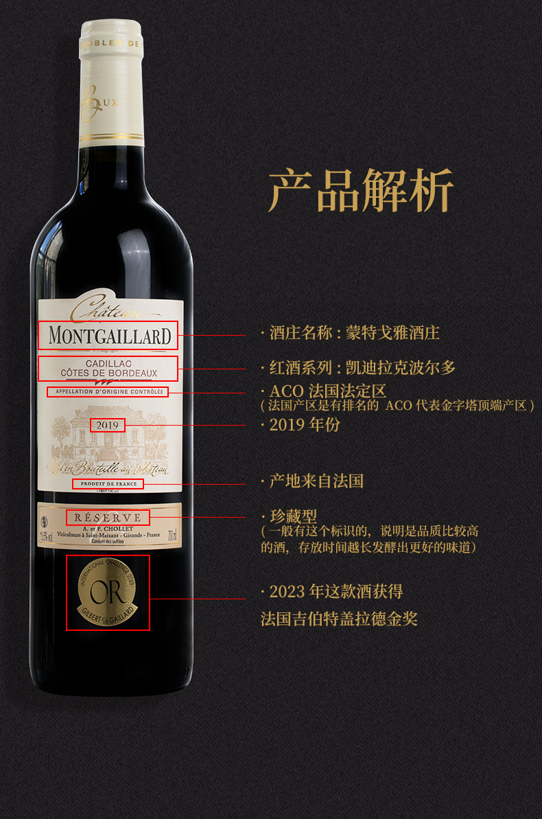 📚 法国AOC原瓶蒙特戈雅酒庄珍藏19年份凯迪拉克波尔多干红酒葡萄酒