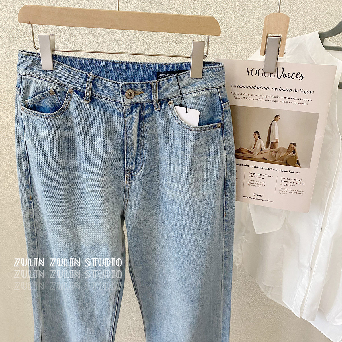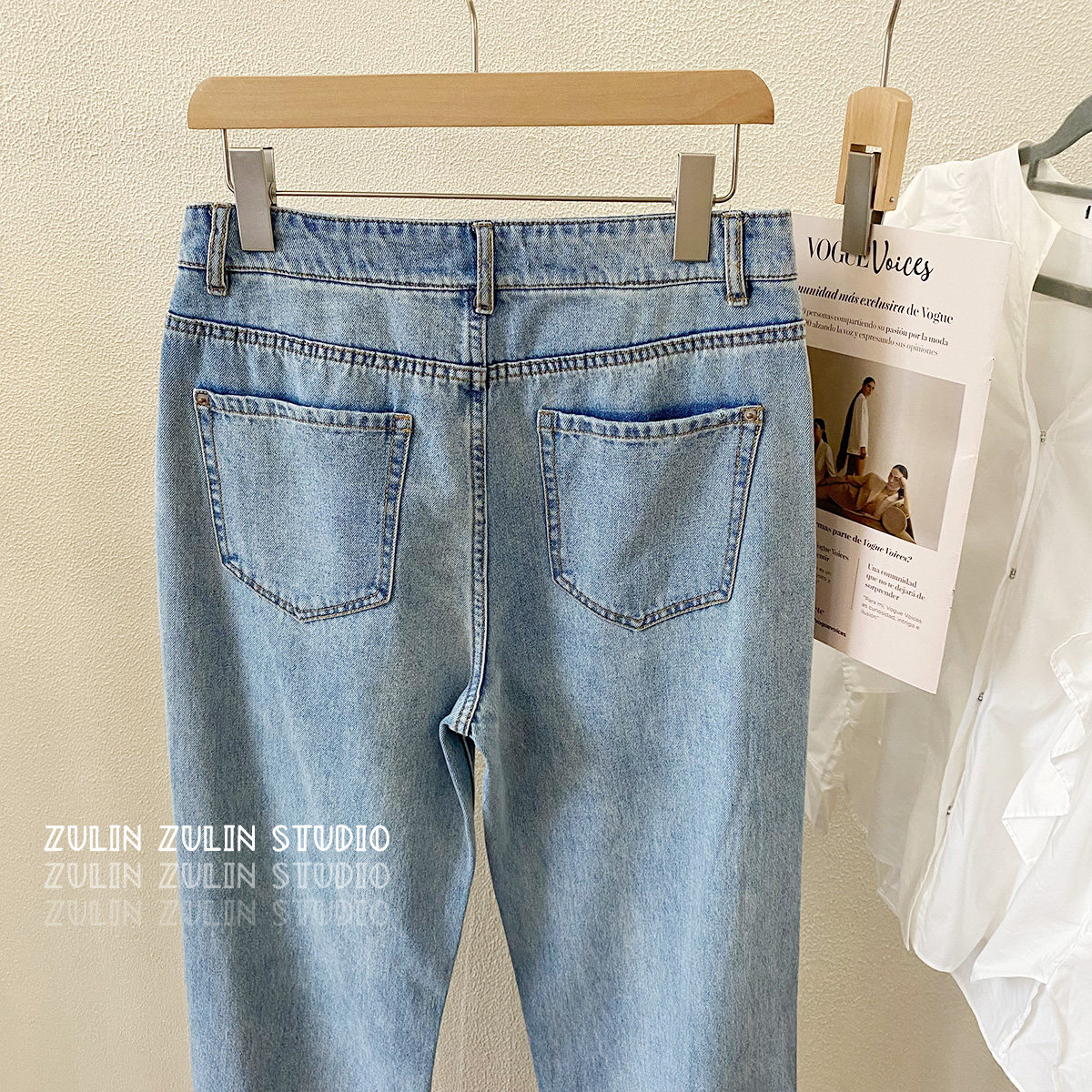 📚 祖琳家◆topfeeling女士浅色牛仔裤小直筒水洗休闲长裤