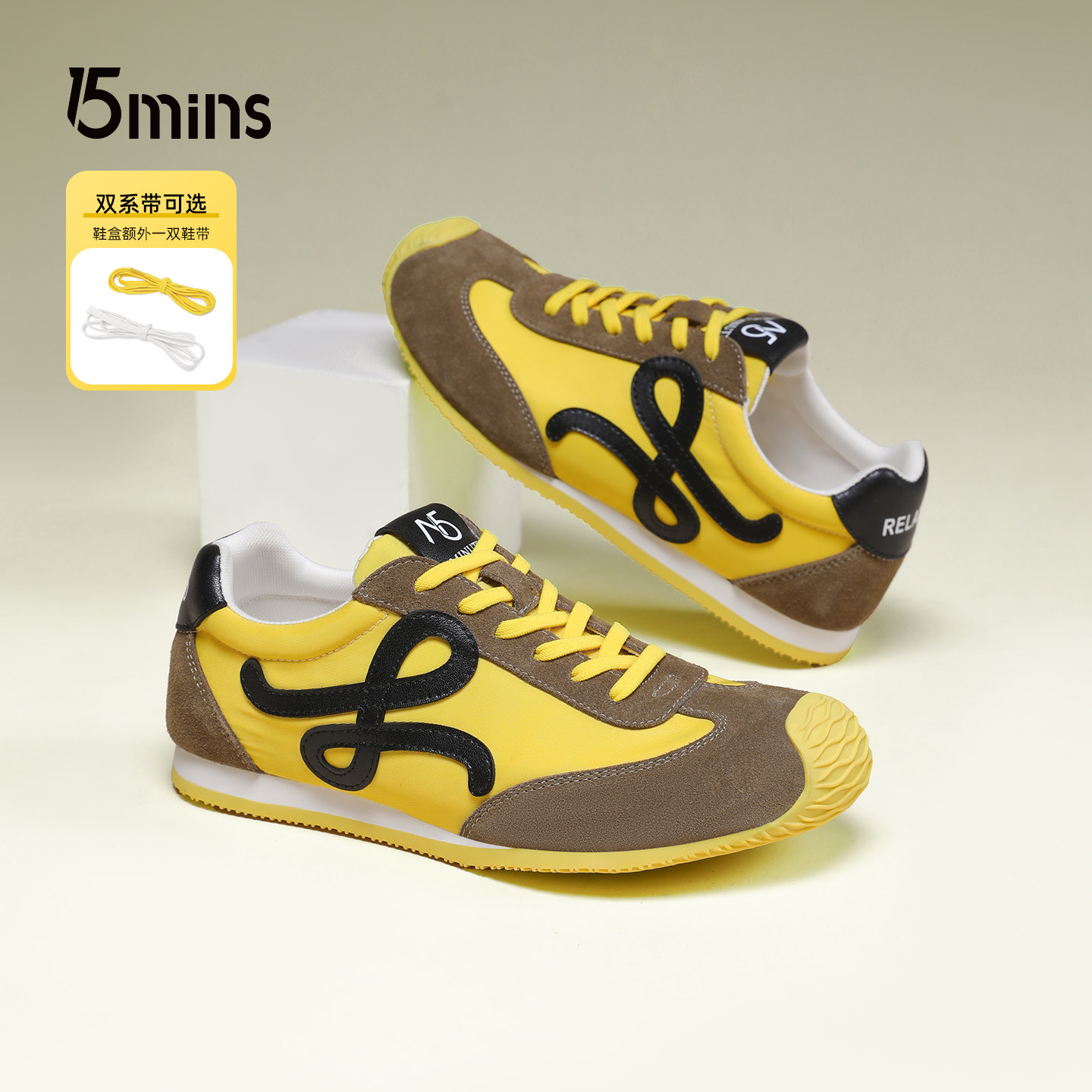 📚 15mins德训鞋男士2025新款透气拼接运动休闲鞋歪头小众阿甘鞋情侣