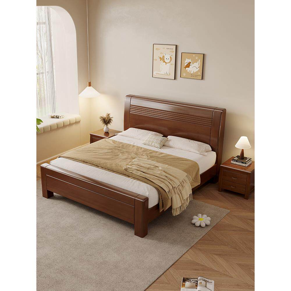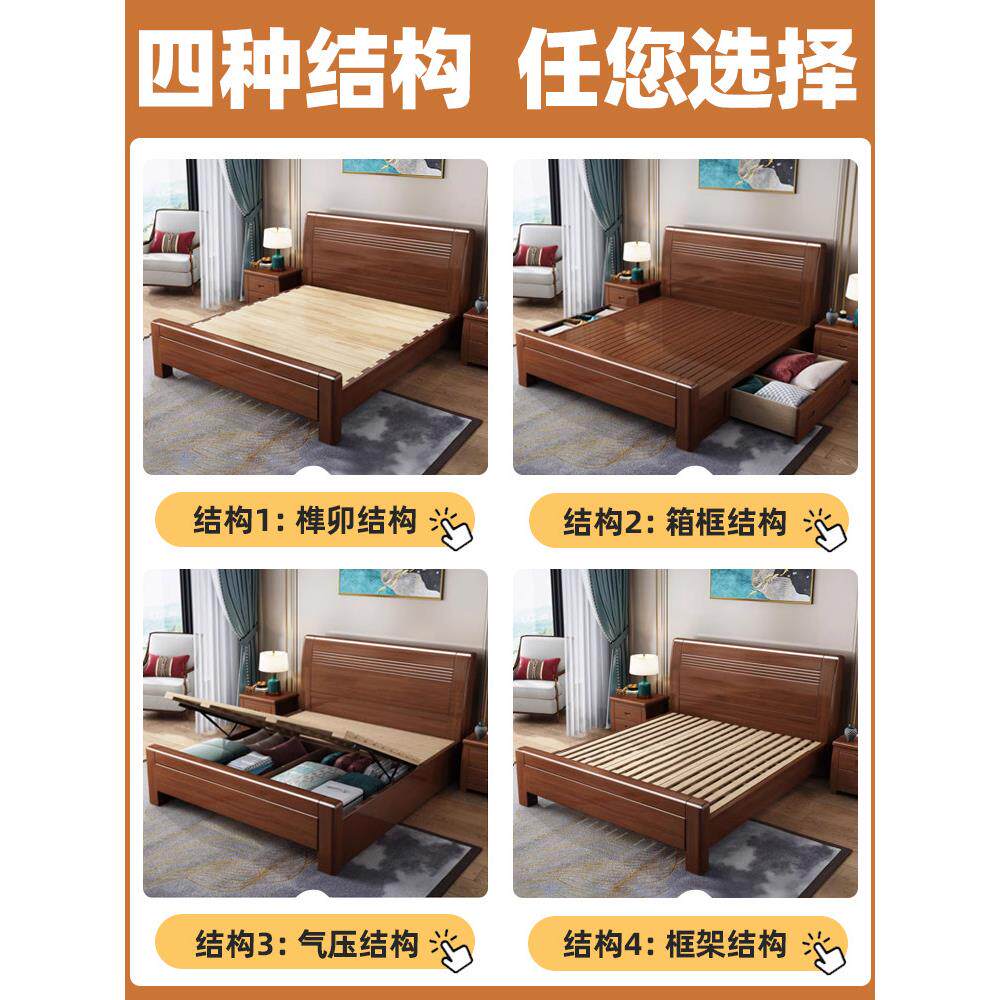 📚 一米二的床家用1米5的床结实耐用床现代简约胡桃木主卧1.5米双人
