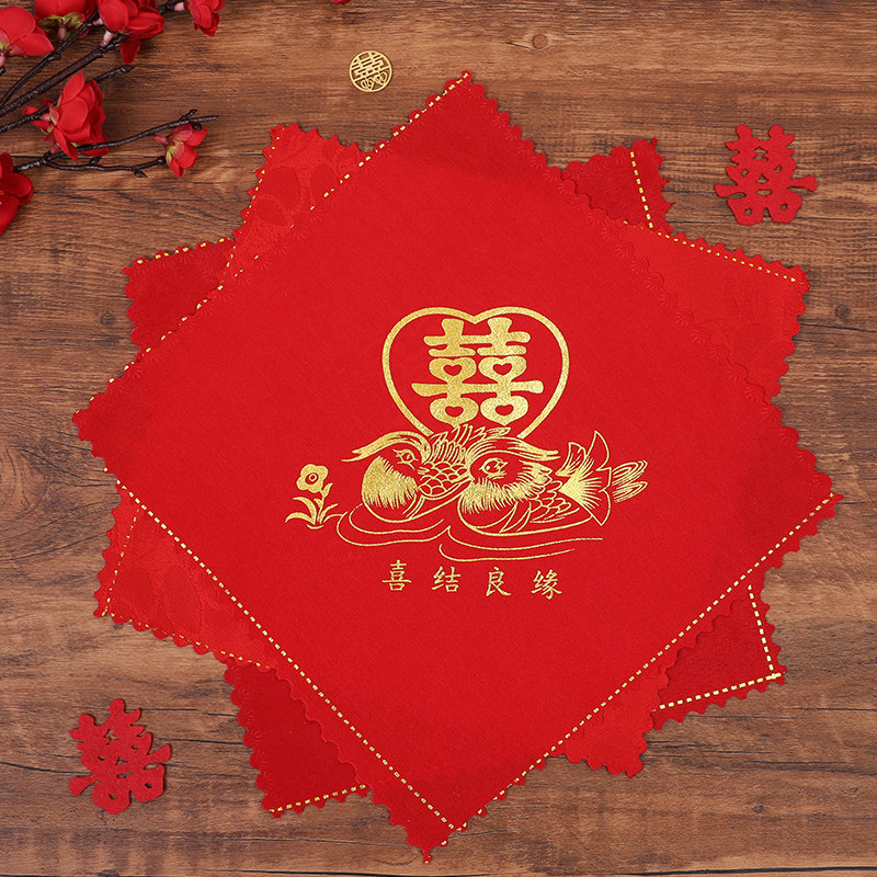 📚 结婚换喜手绢顶针红色小手帕婚礼用的中式扔喜帕女方陪嫁婚庆用品