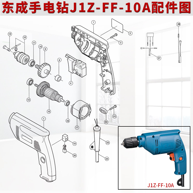 📚 东成手电钻配件J1Z-FF-10A 转子 定子 开关 输出轴 齿轮 碳刷机壳