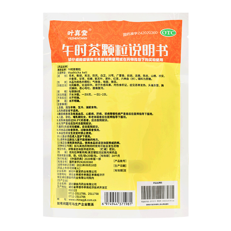 📚 叶真堂 午时茶颗粒6g*20袋/包恶寒发热恶心呕吐腹痛腹泻外感风寒