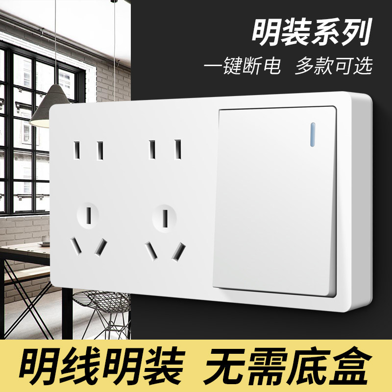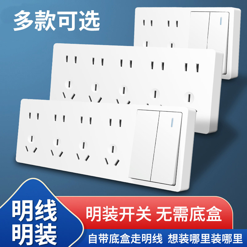 📚 国际电工明装插座开关墙壁明线超薄一开五孔二十五孔面板多孔家用