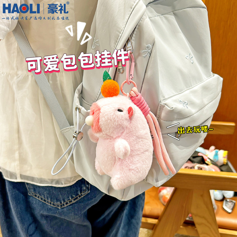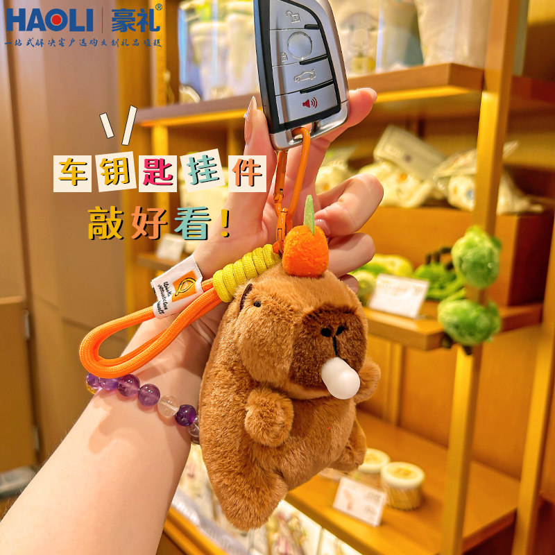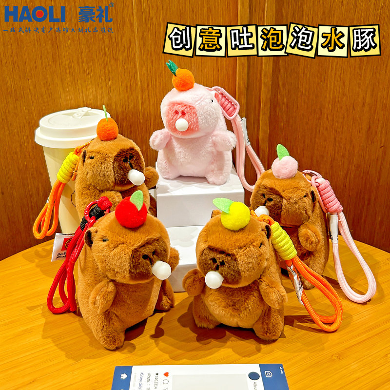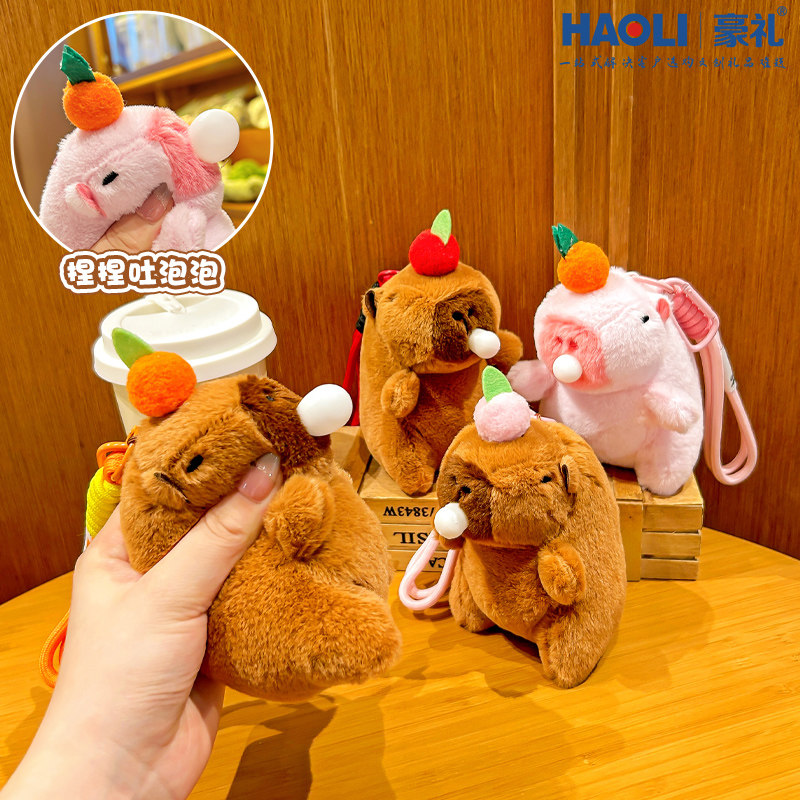 📚 毛绒卡皮巴拉公仔钥匙扣吐泡泡解压玩具书包挂件玩偶挂绳生日礼物