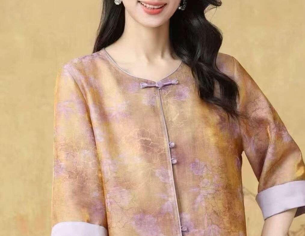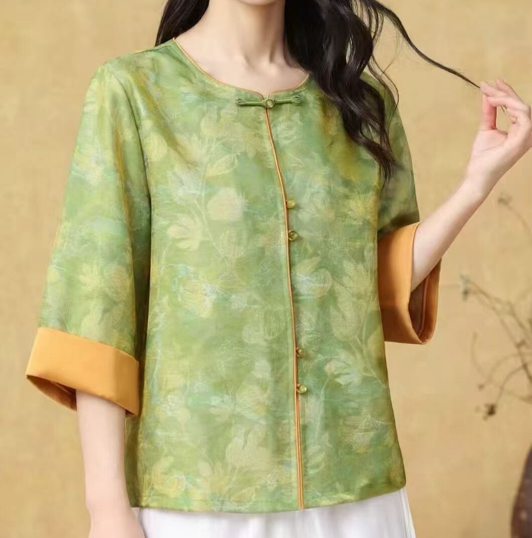 📚 新中式妈妈春装衬衫外套高档大气中老年女装复古国风盘扣提花上衣