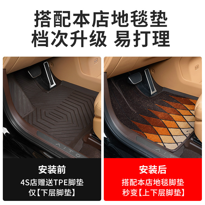📚 适用aito2024款新问界M7脚垫搭配原车TPE二层绒面地毯垫专用配件