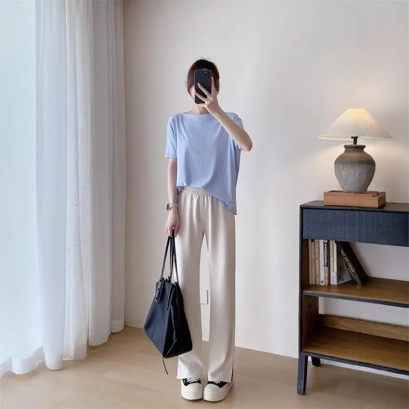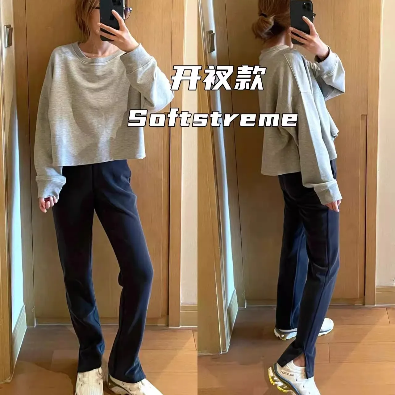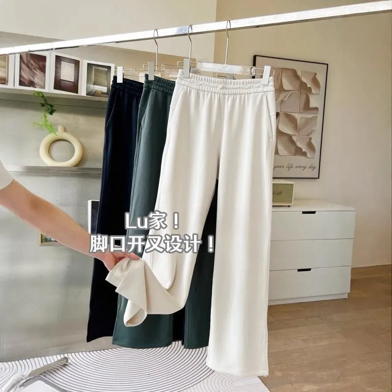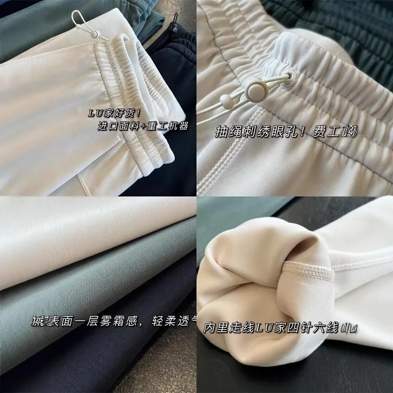📚 lu家长裤开叉softstreme空气层高腰抽绳直筒神裤休闲显瘦阔腿裤夏
