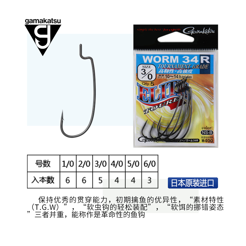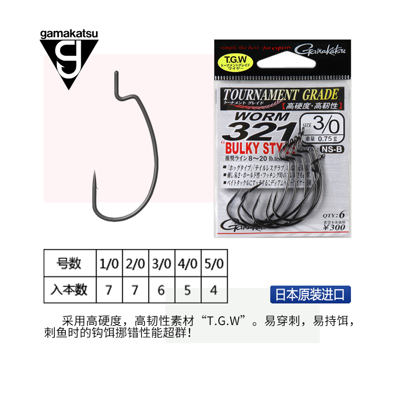 📚 日本进口伽玛卡兹GAMAKATSU雷霆 曲柄钩 路亚钩 软饵虫钩加强鱼钩