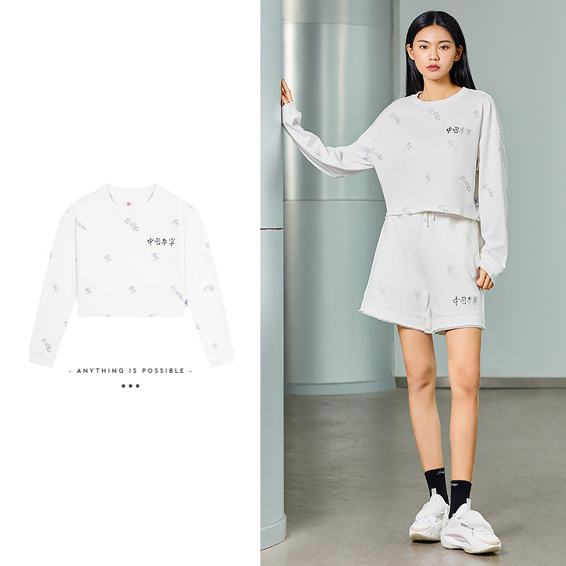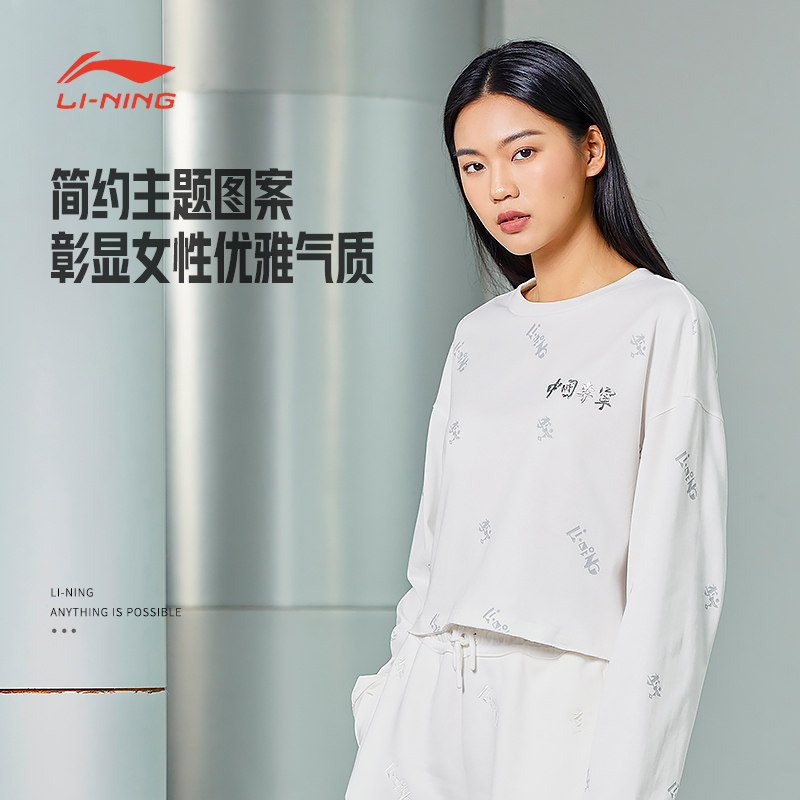 📚 中国李宁长袖T恤女子高腰休闲宽松文化衫运动服 AHSSB34[B品]