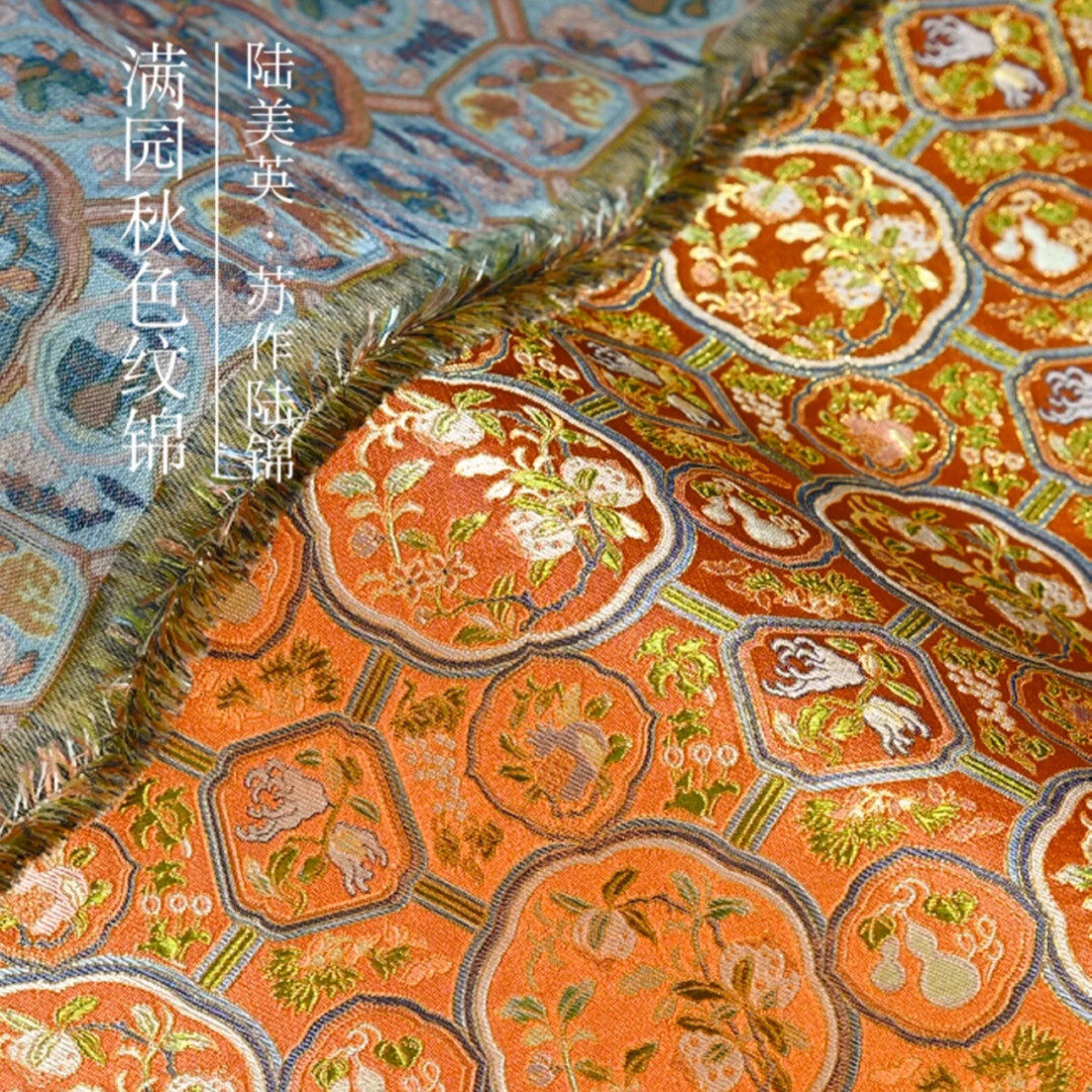 📚 满园秋色纹锦橙色名家宋锦陆美英宋锦品牌宋锦手作做包包发夹葫芦