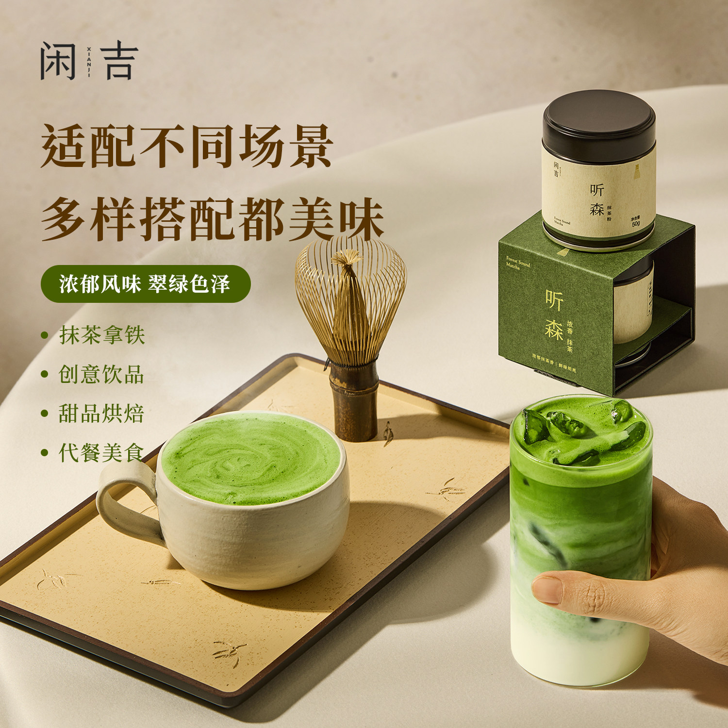 📚 【新品】闲吉听森国产纯天然抹茶粉杭州径山茶道级抹茶粉罐装冲饮