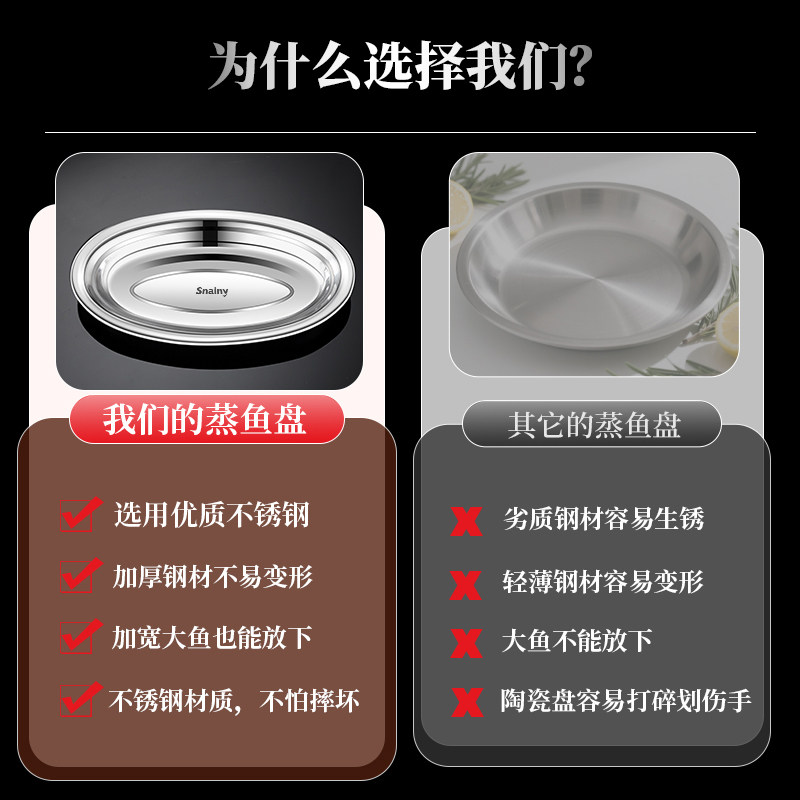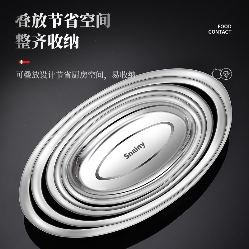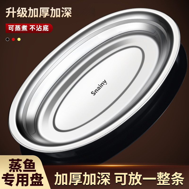 📚 不锈钢鱼盘食品级家用蒸鱼专用盘子餐盘椭圆加厚托盘大号菜盘碟子