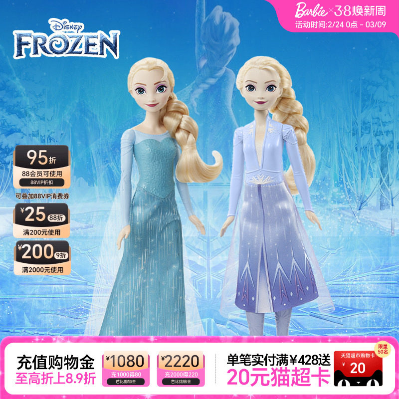 📚 生日礼物芭比娃娃迪士尼冰雪奇缘系列之经典造型艾莎女孩玩具正版
