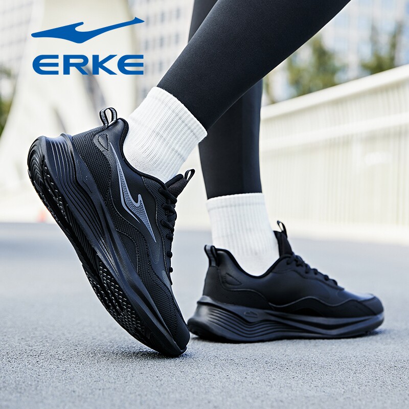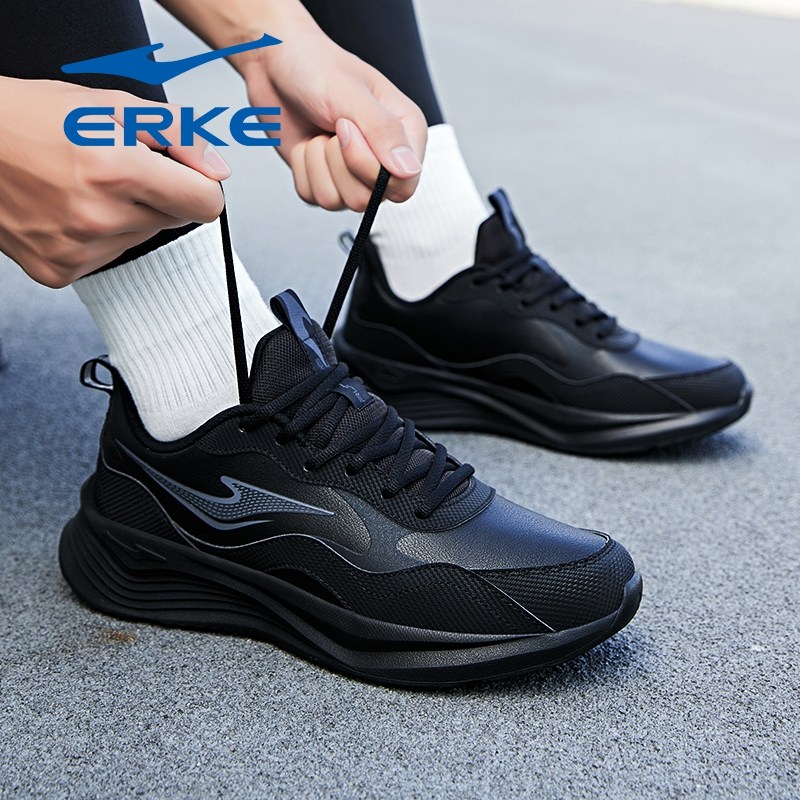📚 鸿星尔克运动鞋男鞋春季雨季防水皮面黑色送爸爸父亲中年跑步鞋子