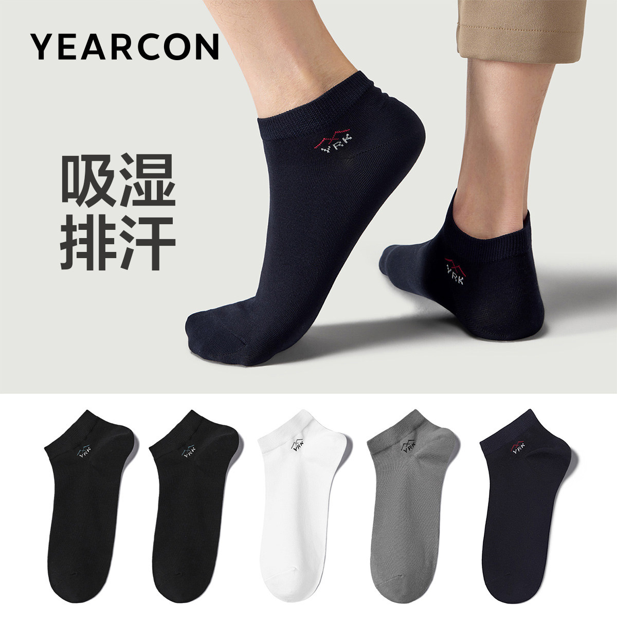 📚 意尔康简约字母男短袜秋季新款休闲纯色透气袜子精梳棉时尚短筒袜