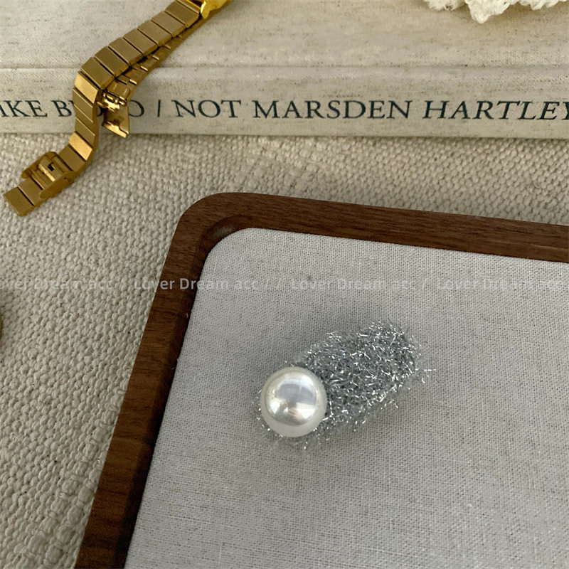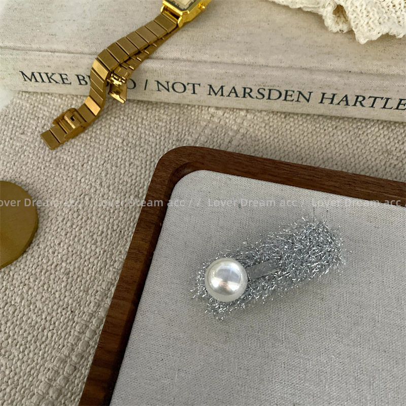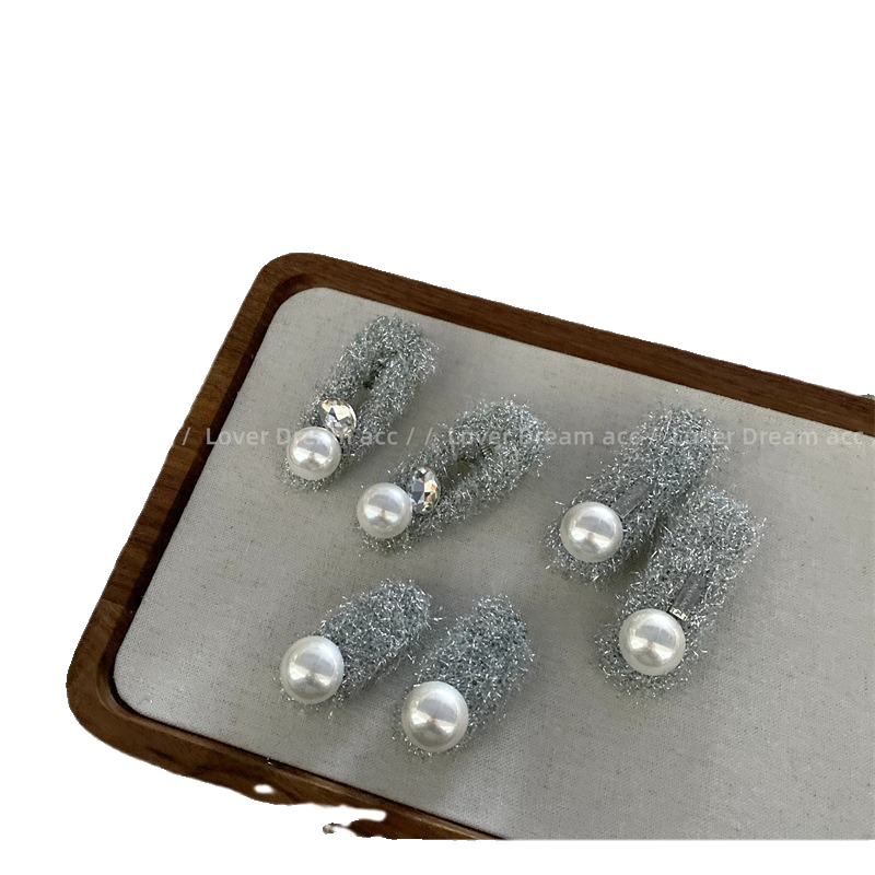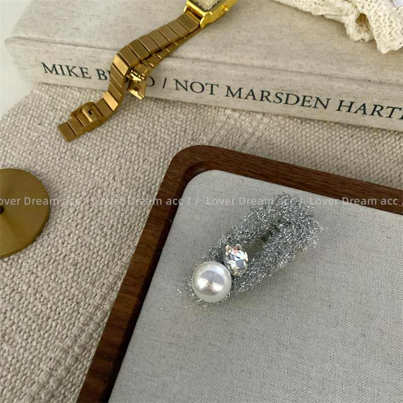 📚 极昼黑夜~不撞款!仿贝珍珠灰色亮丝布艺小香风抓夹鲨鱼夹盘发器