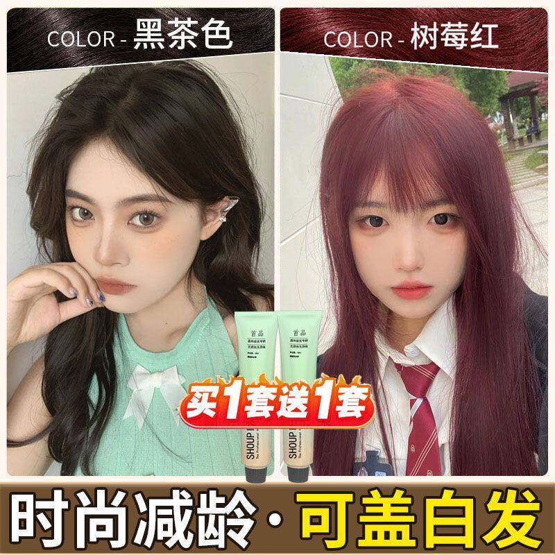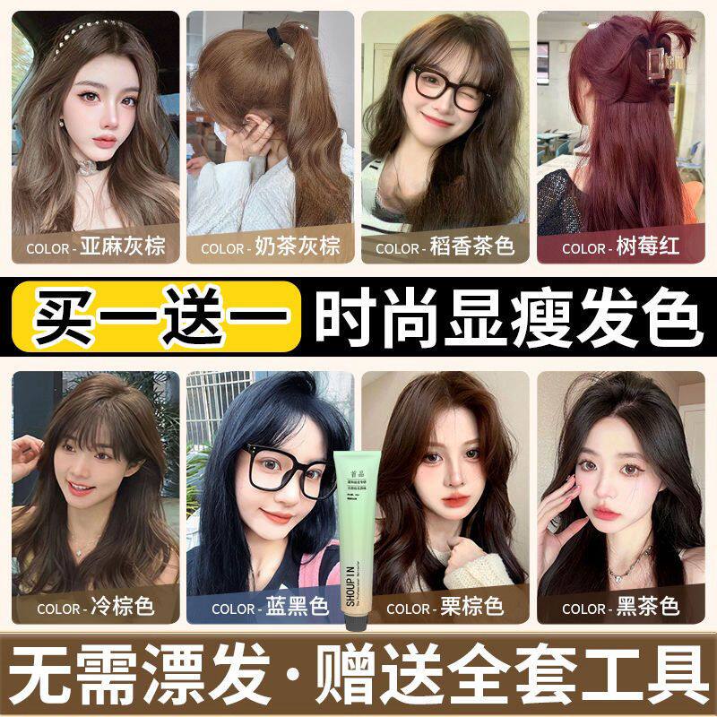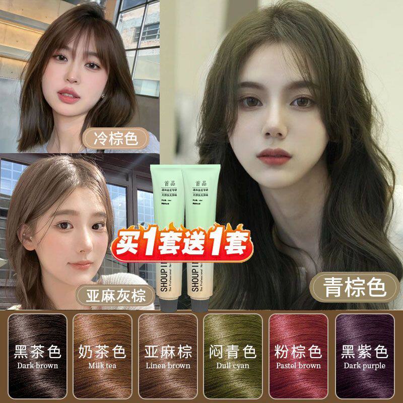📚 染发剂自己在家染发奶茶灰棕亚麻灰棕雾感发色冷棕色家用染发工具