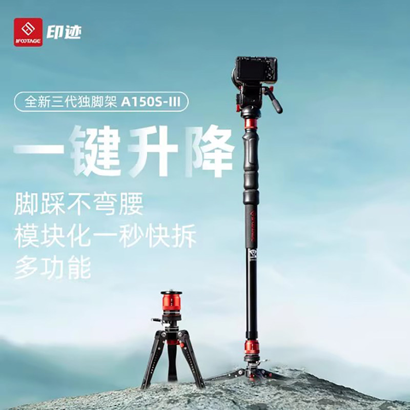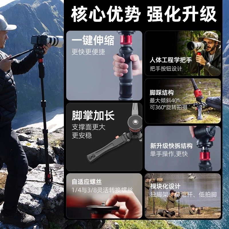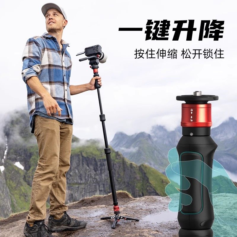 📚 印迹 全新眼镜蛇第三代一键升降伸缩独脚架A150S 脚踩快拆户外便携专业相机微单反摄影摄像液压云台
