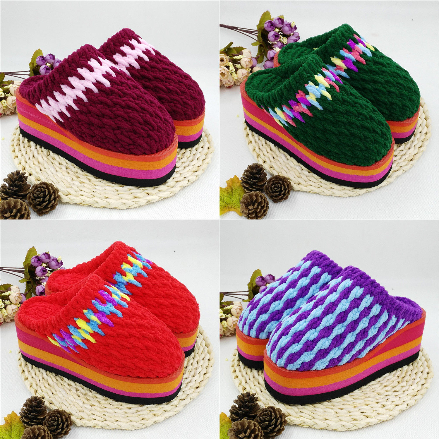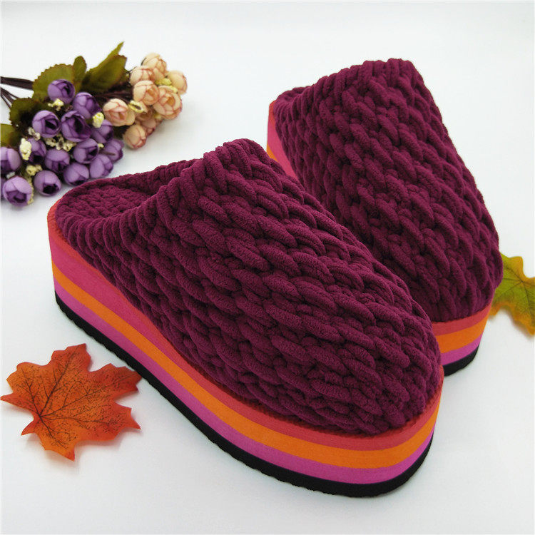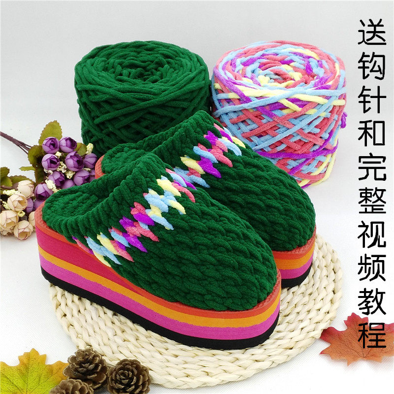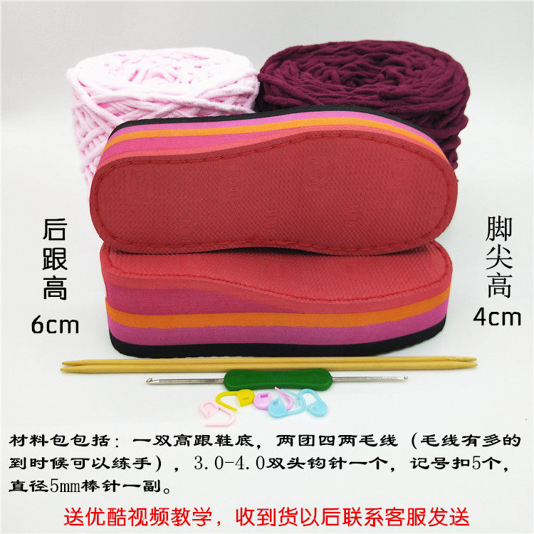 📚 居家坡跟拖鞋材料包手工编织毛线拖鞋冰条线粗毛线鞋底教钩鞋毛线