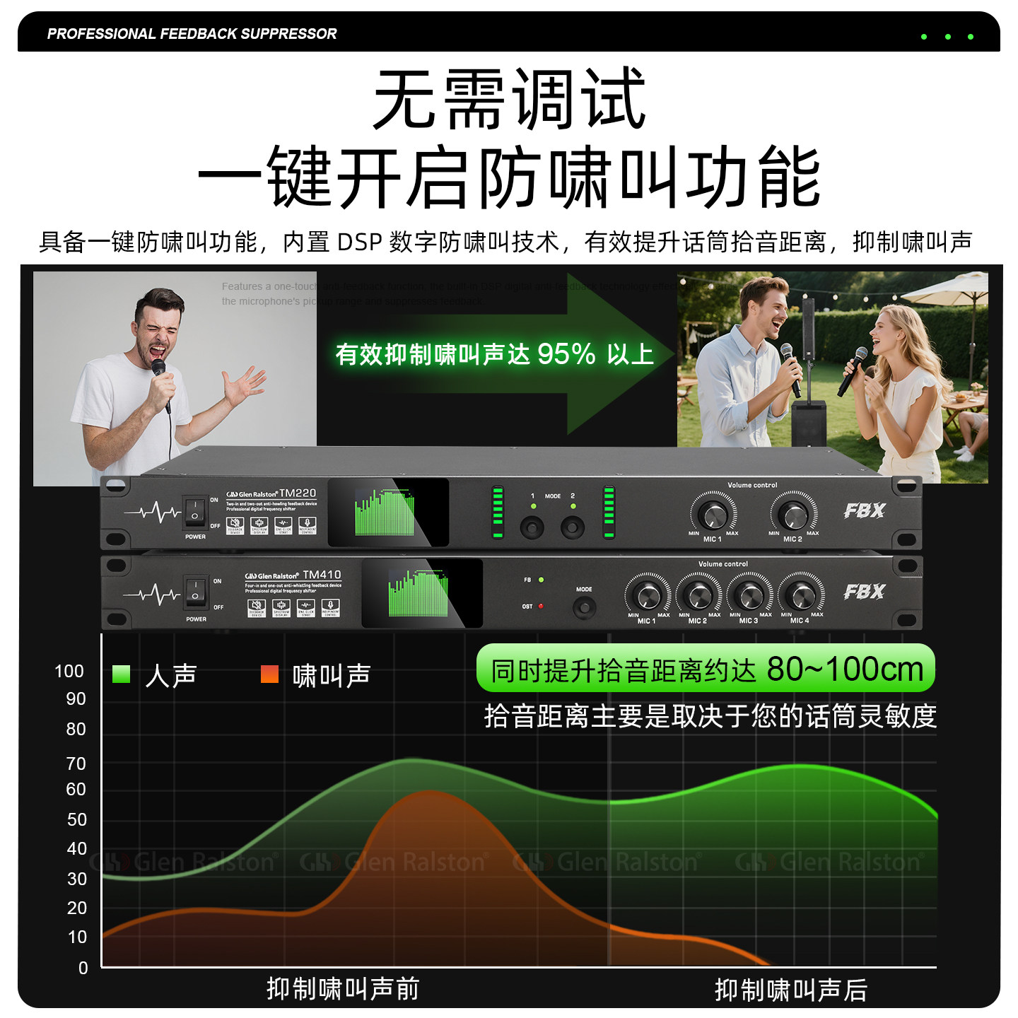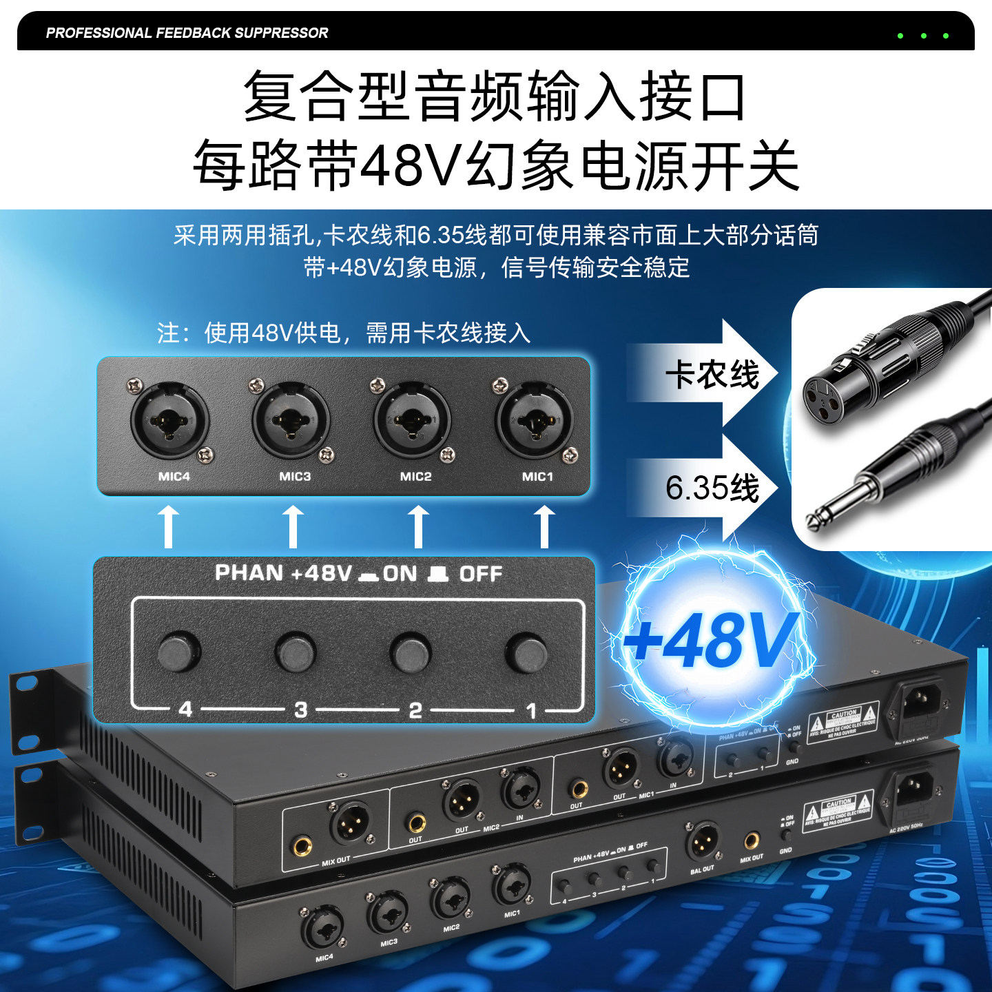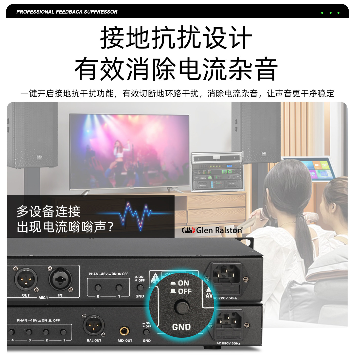 📚 格伦士顿反馈抑制器带幻象电源接口2进6出专业话筒防啸叫舞台设备