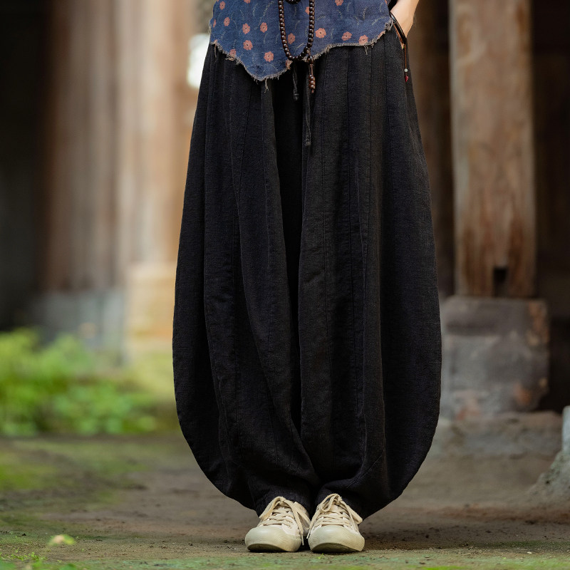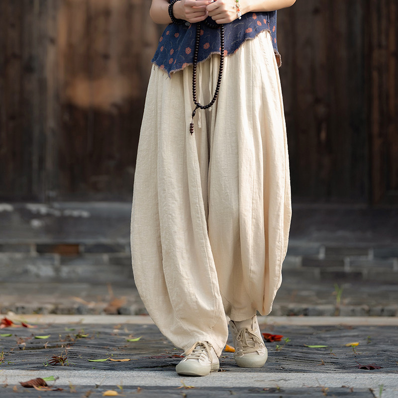 📚 棉麻裤子春季新款文艺复古宽松拼接南瓜裤高端苎麻禅意打坐灯笼裤