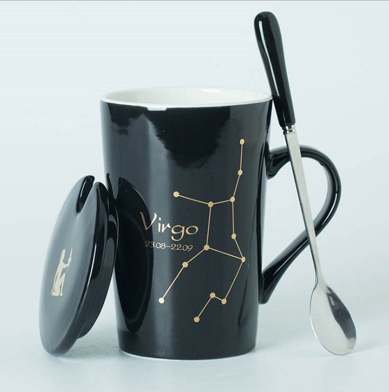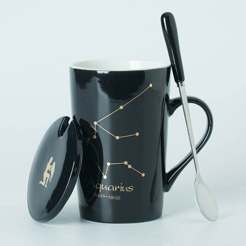 📚 Ceramic Mugs 12 Constellations Creative Mugs with Spoon Lid