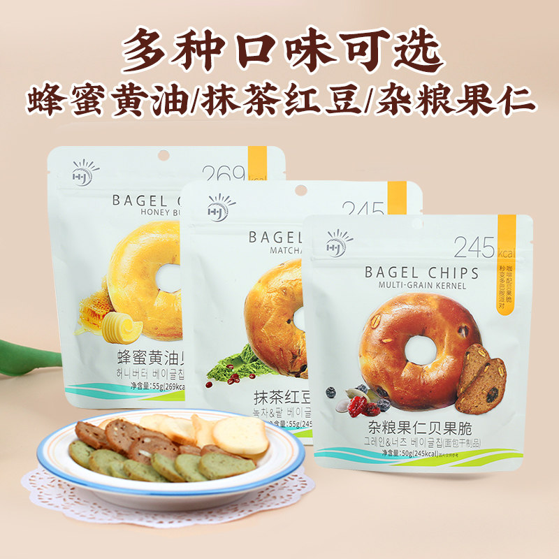 📚 九日蜂蜜黄油贝果脆片非韩国休闲零食杂粮饼干贝果片面包干早餐