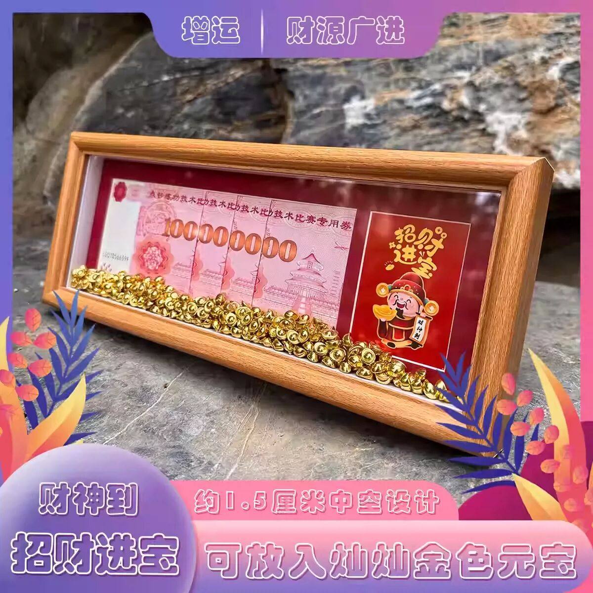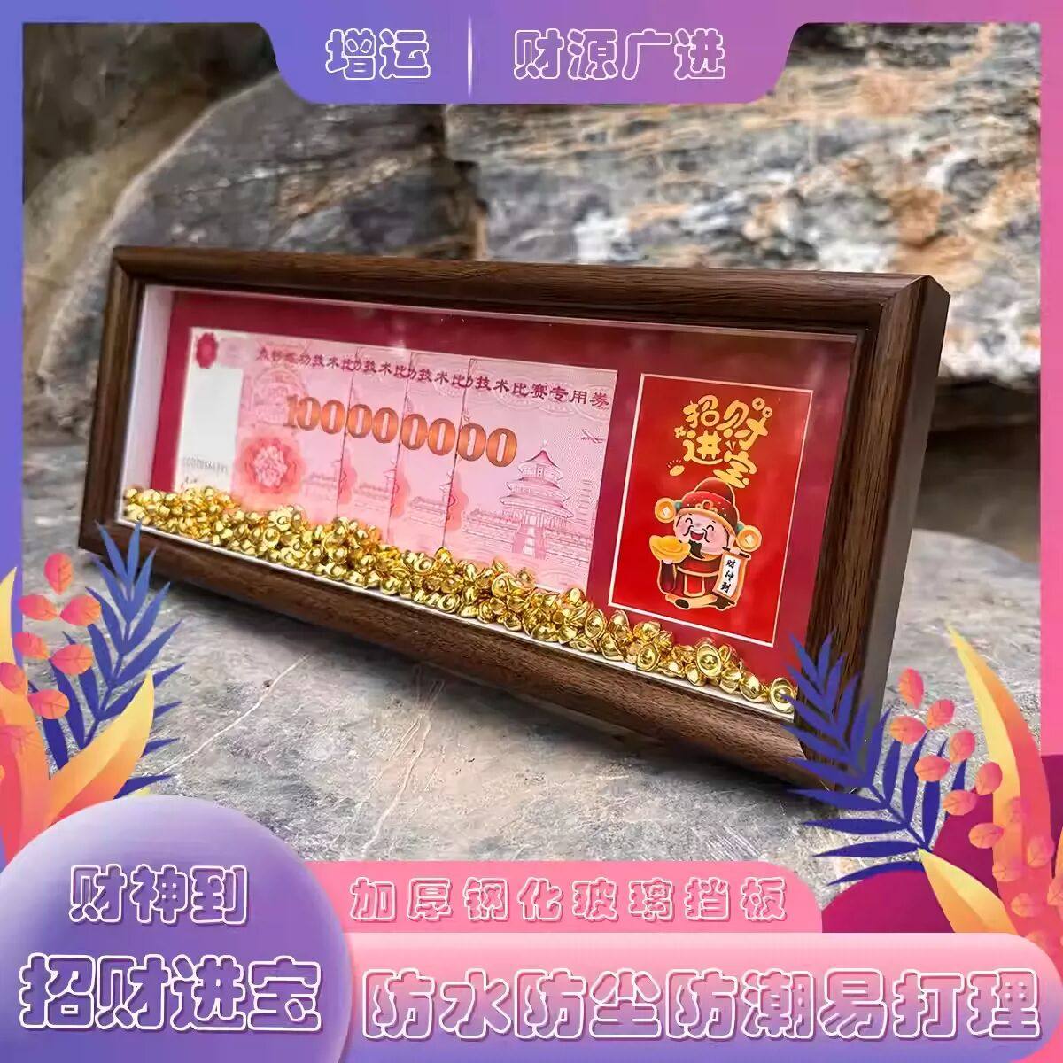📚 股市长虹开业乔迁金元宝财神到财源广进招财摆件一百亿人民币相框