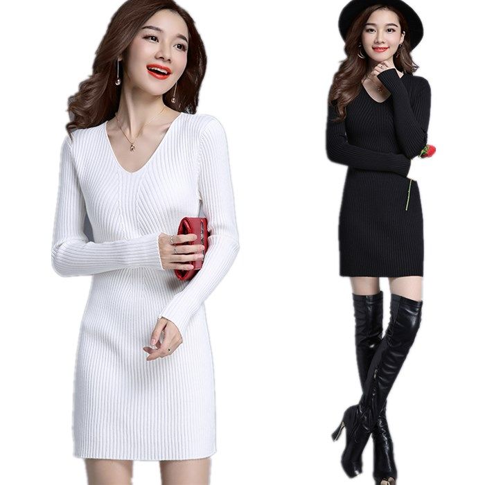 #毛衣女 #矮个子女生 #中长款修身V领 #春秋穿搭 #韩版针织连衣裙 #券后价59.9