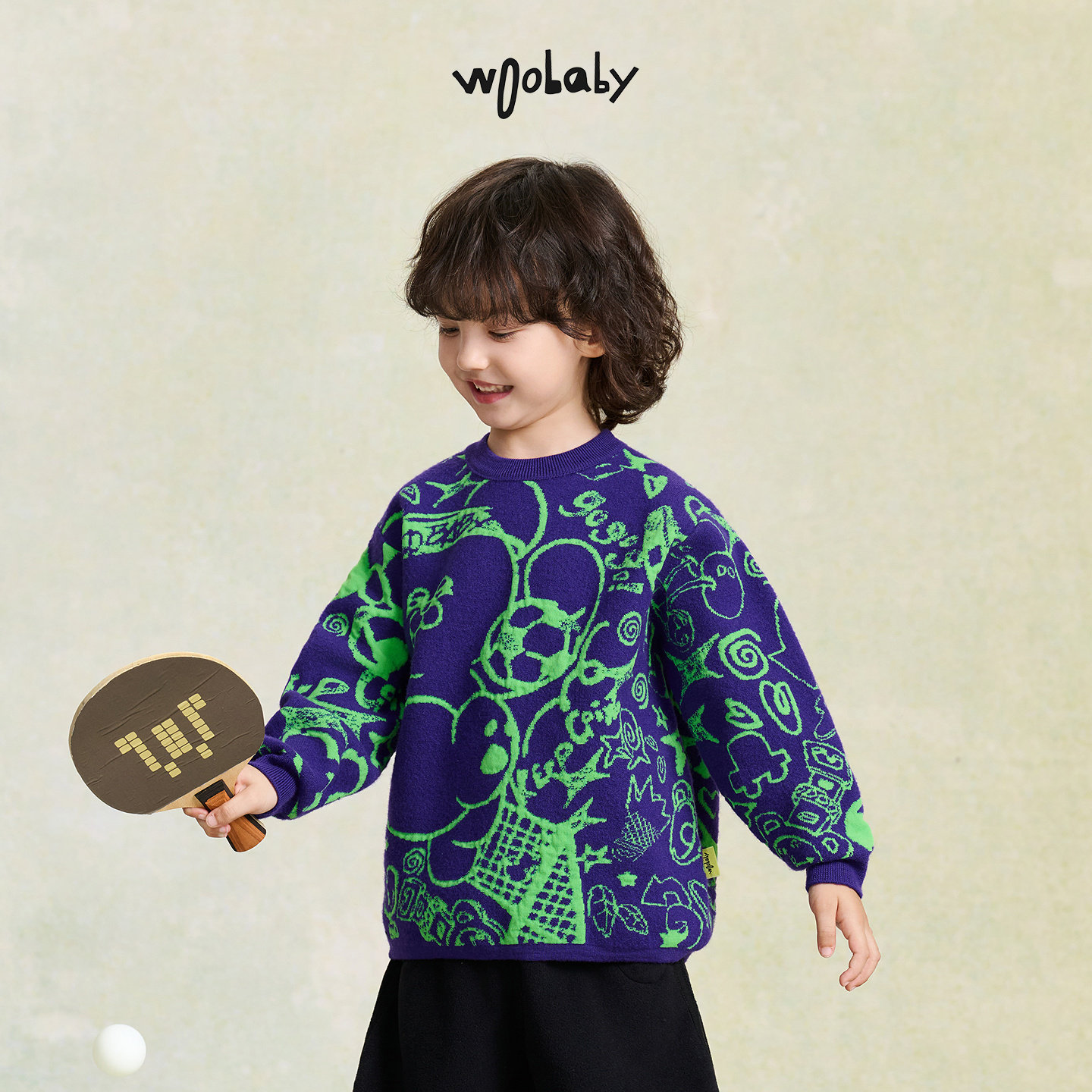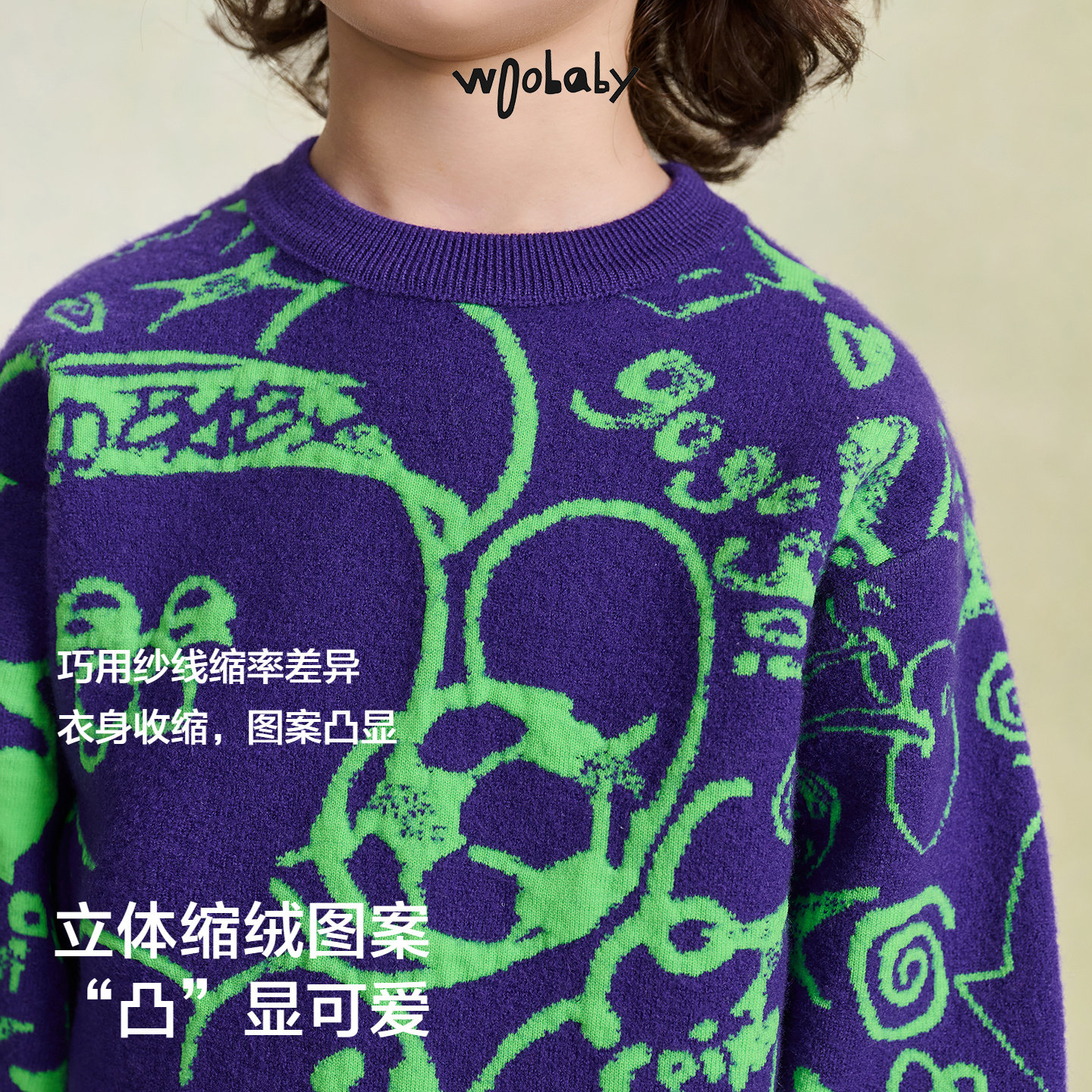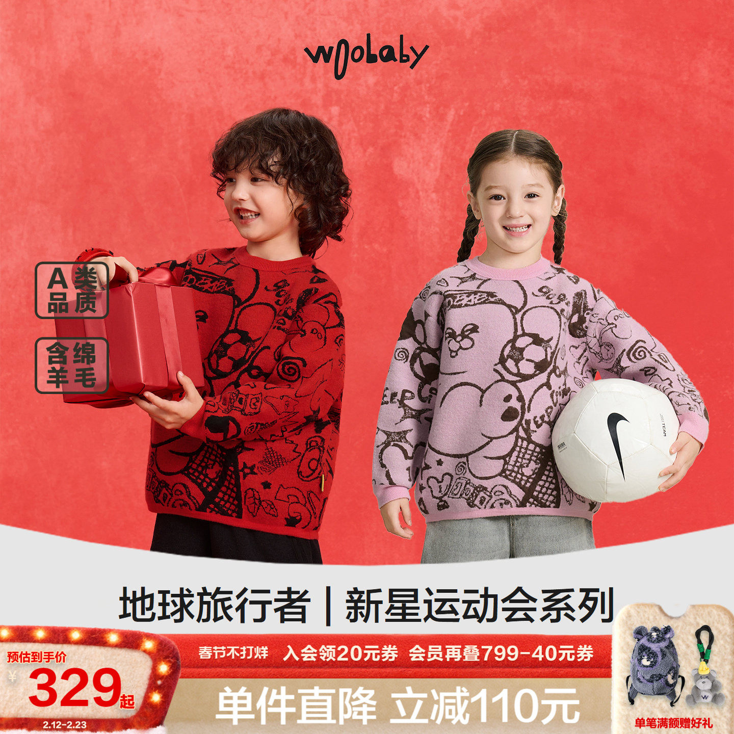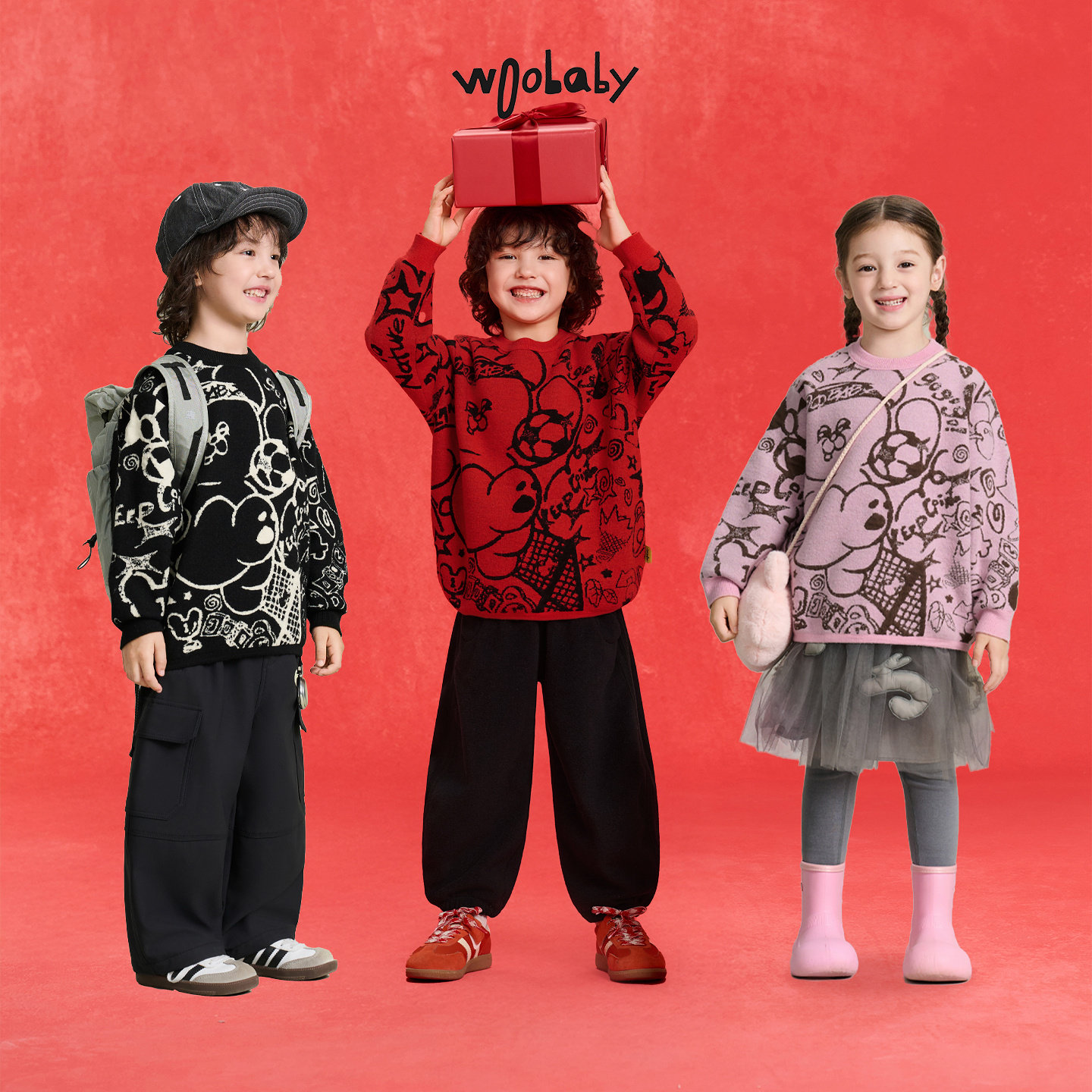📚 [含绵羊毛]woobaby儿童毛衣男女童2025冬装红色过年针织衫拜年服