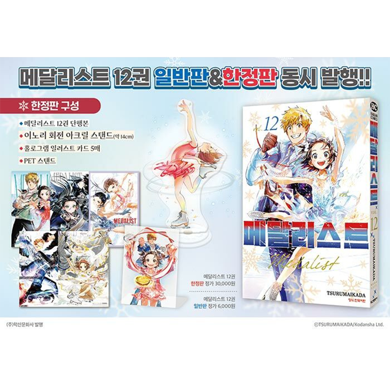 📚 【预售韩文原版】金牌得主 第12卷 特装版TSURUMAIKADA 舞冰的祈愿 旋转亚克力支架 + 5 张插图卡 + PET 支架 漫画周边 进口原版书