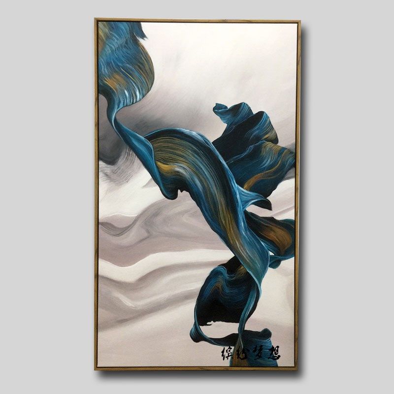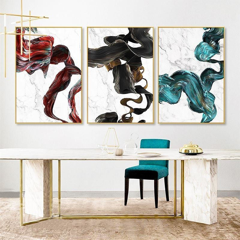 📚 纯手绘艺术油画油墨色彩抽象画现代客厅三联装饰画W轻奢玄关挂画